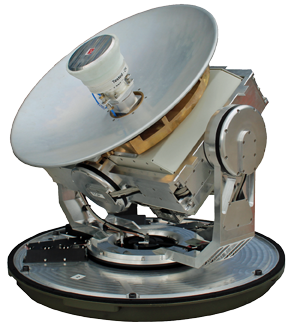 The X-/Ka-multi-band Cobra terminal houses its electronics and polarization system in an RF “can” mounted directly behind the antenna. Photo is courtesy of EM Solutions.
